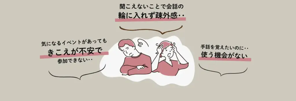 聞こえない / 聞こえにくい人や、支える人たちが多く集まる場所だからこそ、聞こえに関する悩みごとや情報交換ができ、「ひとりじゃない」と思えるつながりが作れます。